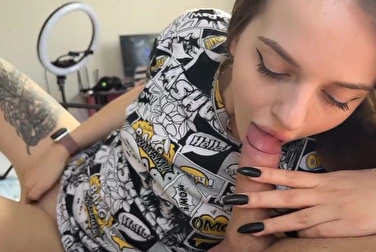 Пошлые разговоры — 00:13; минет — 01:40, 06:13; заглатывает — 01:57, 02:18, 04:16, 06:27; мастурбирует — 03:27, 04:56; дрочит — 03:44, 05:32; кончил в рот — 07:22